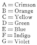The weak point of this, however, is that he has arbitrarily taken C to be the equivalent of "deep red." Now if C is deep red, then E is yellow, A is indigo, etc., exactly as he claims, but he has failed to determine the value of the constant, so to speak.